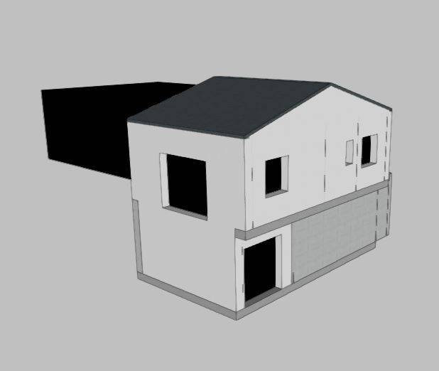 Elle est composée de deux niveau : le RDC avec une cave et une salle de sport ; et l'étage avec la partie chambre. L'enveloppe du bâtiment a été réalisée en parpaing + isolation + briquette.