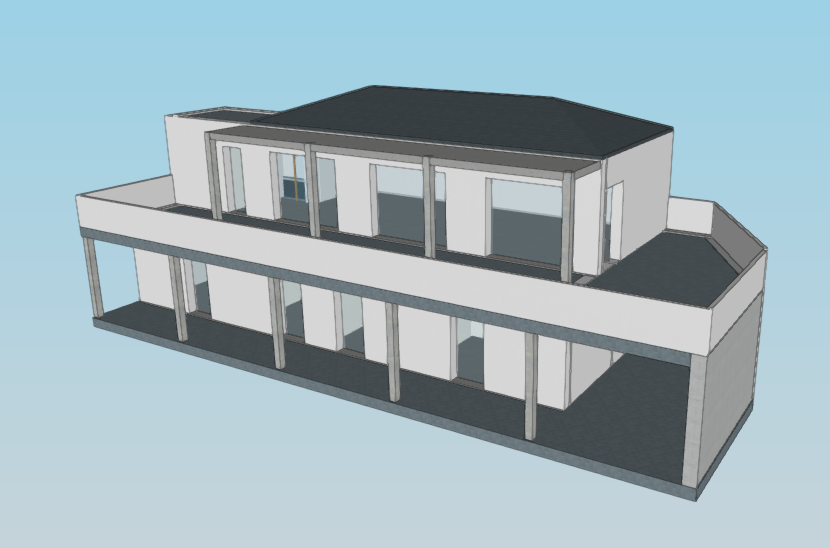 Construction d'une maison individuelle sur 2 niveaux. La maison présente une exposition parfaite. Afin de réduire l'exposition au soleil l'été, la construction est prévu avec des terrasses avancées et des casquettes.